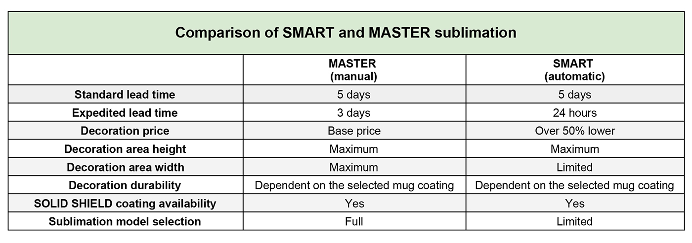 Master Sublimation - this is the option for the discerning, offering the highest quality and print surface, even on the most complex models of sublimation mugs.