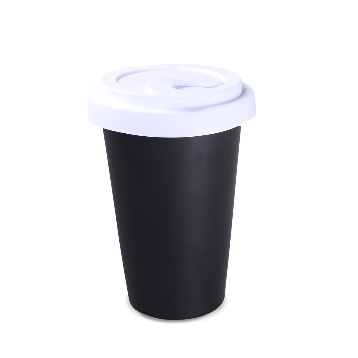 Porcelain promotional mug with a polymer lid that protects against accidental beverage spills – Lock stopper version. Designed for active people and travel enthusiasts. Thanks to its rare internal structure with double porcelain walls, this mug features an enhanced level of thermal insulation. The mug body is available in white and satin black. The lid is available in the following colors: white, orange 021C, Cool Gray 7, navy blue 294C, brown 4695C, black, pink 4064C, blue 2144C, eucalyptus 5493C, desert sand 2310C.